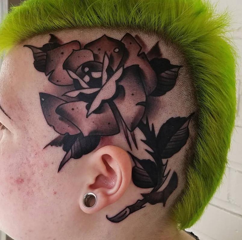 Traditional Style Rose Tattoo Inked On The Temple Of The Head Rose Tattoos Head Tattoos Rose Tattoo