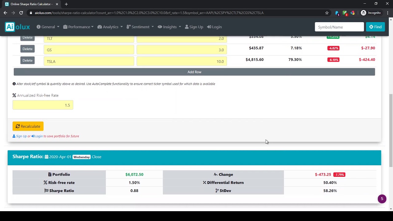 Rolling Sharpe Ratio Calculator For Your Portfolio Aiolux